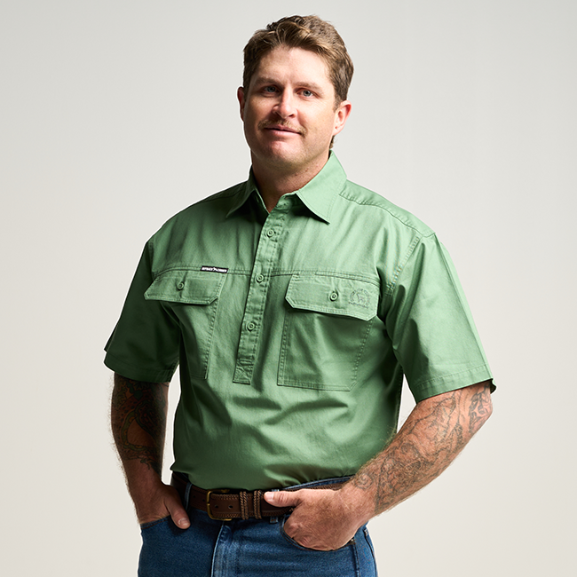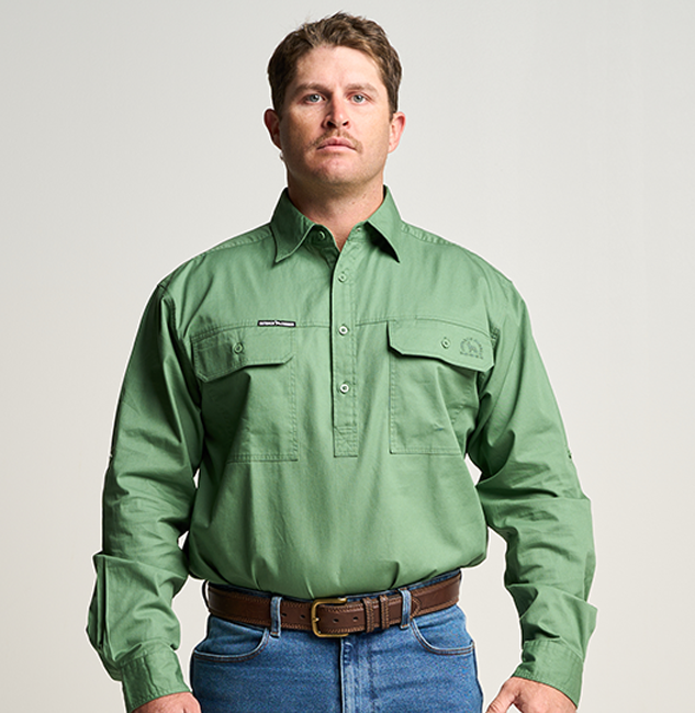 KILCOY | Mens Half Button Long Sleeve Work Shirt | Green