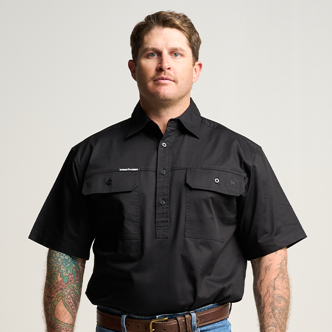 KILCOY | Mens Half Button Long Sleeve Work Shirt | Black