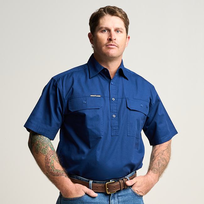 KILCOY | Mens Half Button Short Sleeve Work Shirt | Royal Blue
